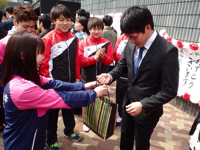 記念品とお花渡しです